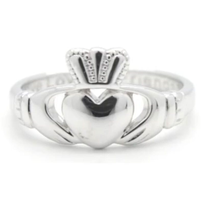Silver Claddagh Ring with Love Loyalty Friendship Inscription