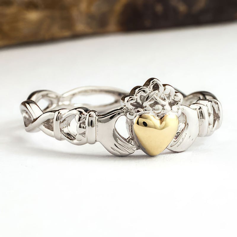 Sterling Silver Claddagh Ring With 10k Gold Heart